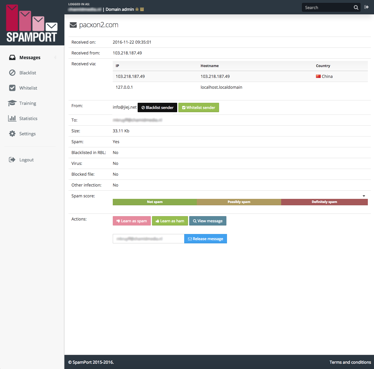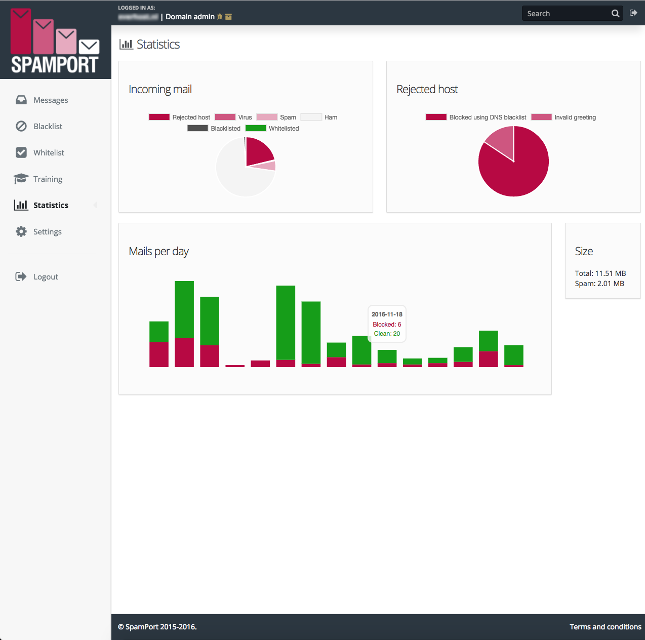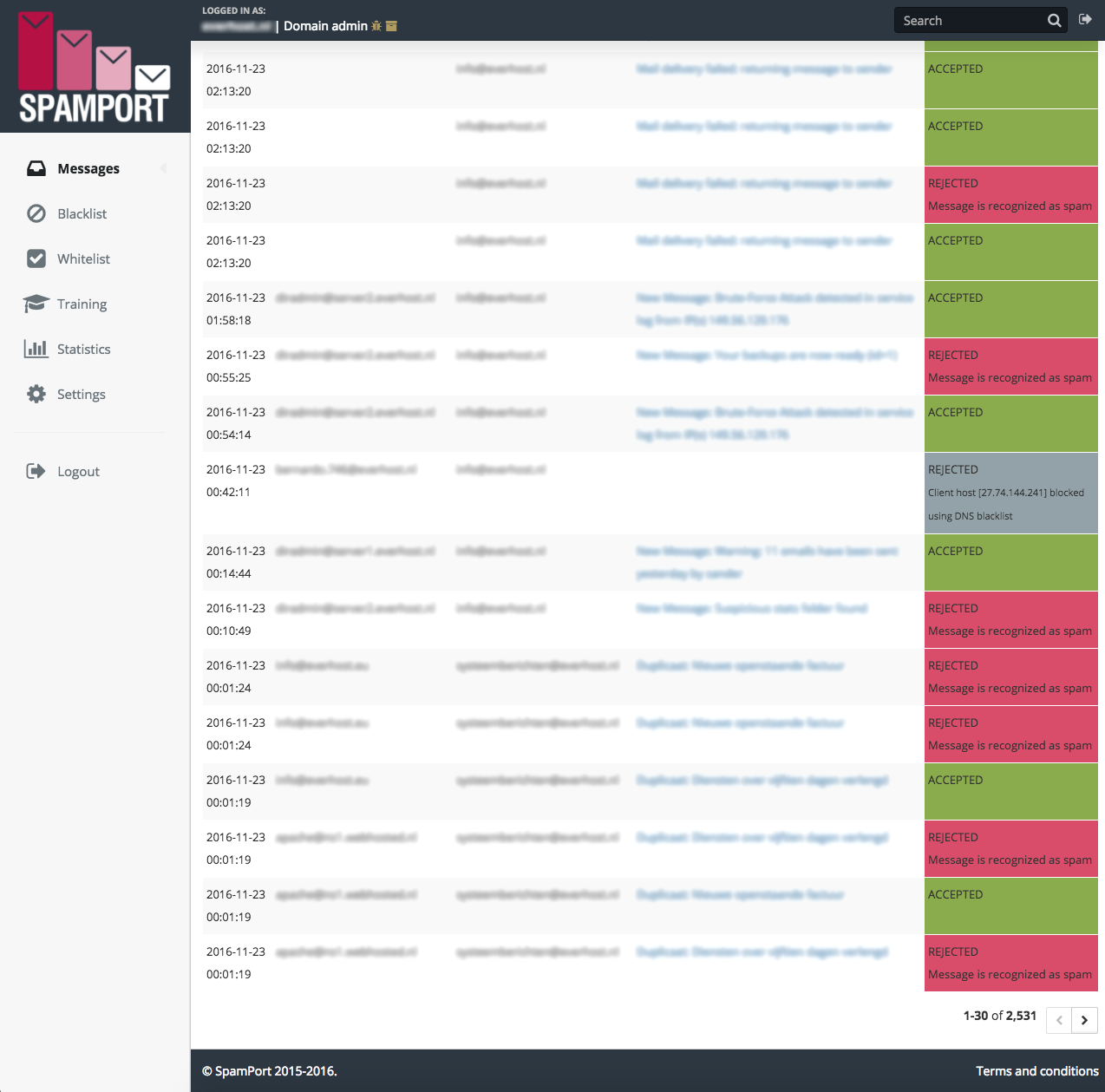 Through the SpamPort control panel, you can easily manage your domain (s) and change settings. It is also possible to release the email. You can also easily make changes in the control panel, to ensure only legit mails reach your inbox.