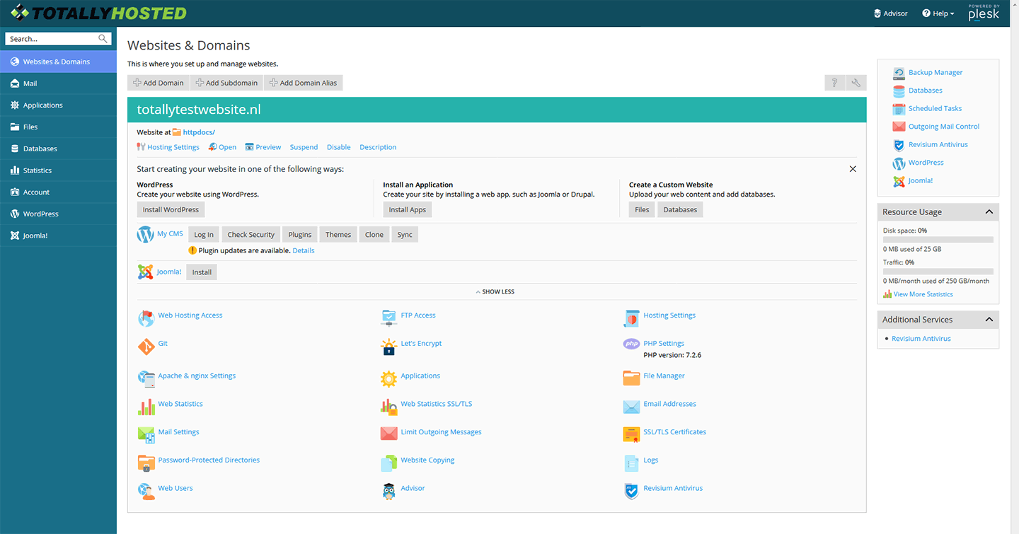 Bij elk webhostingpakket dat u bij ons afneemt kunt u gratis gebruik maken van het Control Panel Plesk. Met dit Control Panel (CP) kunt u op elk gewenst moment, zonder onze tussenkomst, uw instellingen beheren.