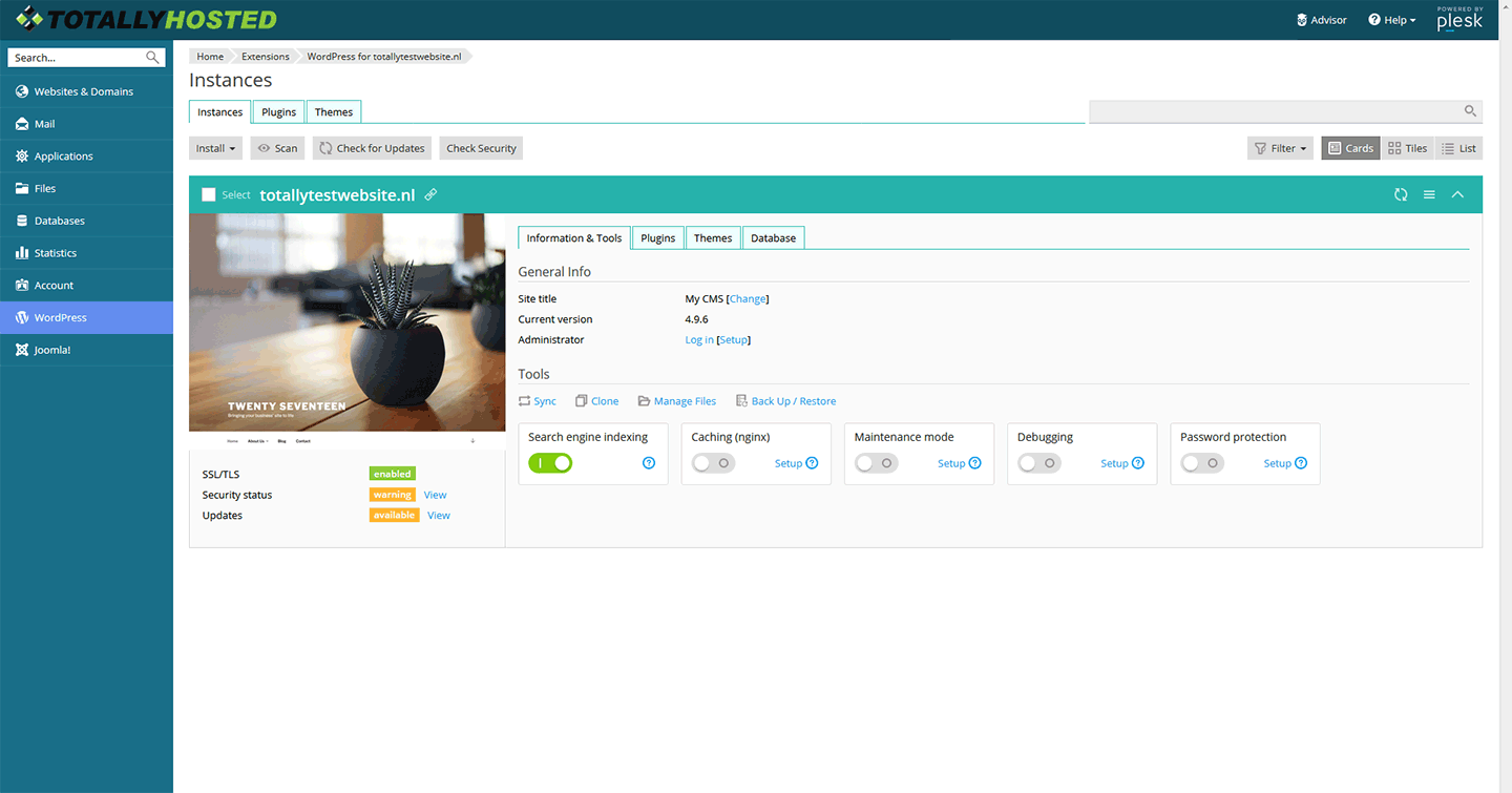 Vanuit onze WordPress Toolkit is het mogelijk om de Wordpress instellingen te beheren, WordPress te beveiligen, te updaten en meer.